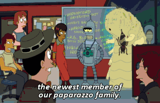 the newest member of our paparazzo family. Nice to meet you. And even though it's only my first day, I want you all to know that I'm already better than you. - Stay out of my way! - (SLURPING)
