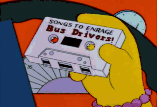 Man, I don't know why I bought this stupid tape. Hey, Simpson. Race ya. First one to the front of the bus gets Martin's lunch money. What? Go apple! Go orange! Go banana!
