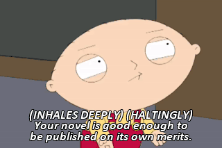 (INHALES DEEPLY) (HALTINGLY) Your novel is good enough to be published on its own merits. You think so? Yeah, you bet.
