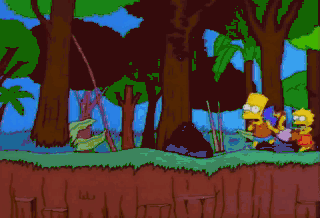 Here, Milhouse. You go first. Okay. Now throw the vine back. There's no time.
