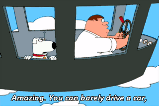 Amazing. You can barely drive a car, and Yet you were allowed to fly a blimp? Yeah, America's great, isn't it? Except for the South. Boy, I hope Lois is watching.
