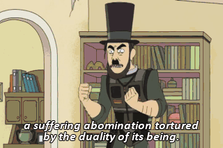 a suffering abomination tortured by the duality of its being.