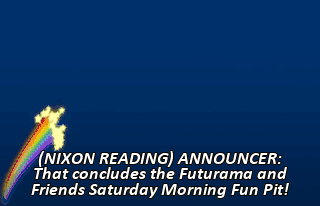 (NIXON READING) ANNOUNCER: That concludes the Futurama and Friends Saturday Morning Fun Pit!