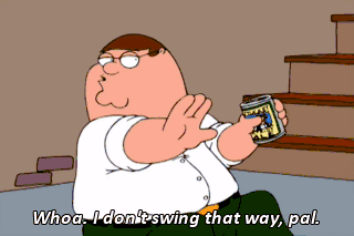 Whoa. I don't swing that way, pal.
