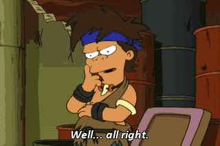 Well... all right. But no interfering with our grand works. I tell ya, that Butch runs a pretty good civilization. I think I'll enjoy serving under him. Uh! You know your problem, Fry? You're not ambitious.