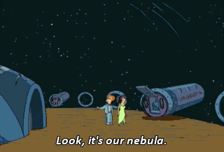Look, it's our nebula. Whenever I see it, I'll think back to that moment when we almost-- Never mind. Everyone else is off the ship. Where in Babylon is Bender?