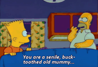 You are a senile, buck-toothed old mummy... with bony girl arms, and you smell like-- - An elephant's butt ? - Hee-hee. An elephant's butt. But he's your boss. Do you have to mail it right this minute ?