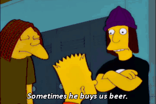 Sometimes he buys us beer. I thought Kearney was dating your mom. Hey, she came on to me.