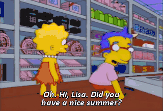 Oh. Hi, Lisa. Did you have a nice summer? Don't you hate that we have to go back to stupid school tomorrow? I like school. Me too! We have so much in common.