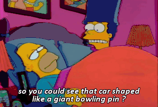 so you could see that car shaped like a giant bowling pin ? Remember ? Who could forget ? Then you'll also remember that you owe me a favor... Oh, Marge.