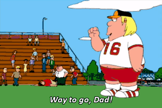Way to go, Dad! You hit my mom! No, I hit your dad. Stand back. Give her some air. You mean, "Give him some air." Call an ambulance. She's going into labor. You mean, "He's going into labor." Whoops.
