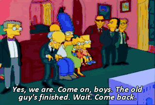 Yes, we are. Come on, boys. The old guy's finished. Wait. Come back. You can't do this to me. I'm Charles Montgomery Burns !