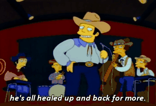 he's all healed up and back for more. Let's give a big drunken welcome to Yodeling Zeke.