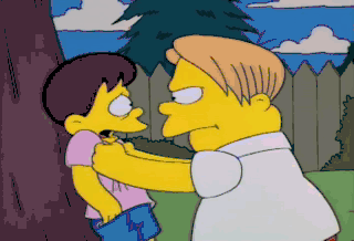 Hey, no one manhandles the bosom chum of Nelson Muntz!