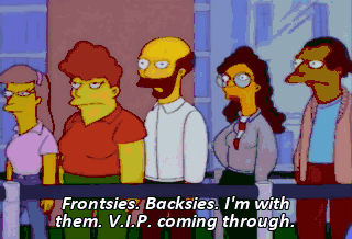 Frontsies. Backsies. I'm with them. V.I.P. coming through. Very important person. Give me frontsies.