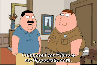 I suppose I can't ignore my Hippocratic oath. All right, drop your pants.