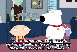 "I am in command. You are safe with me. I will cradle you in my arms "through any crisis in any galaxy."