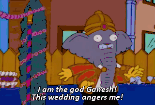 I am the god Ganesh! This wedding angers me! All will die unless it is stopped. Oh, God. Please! Listen to me!