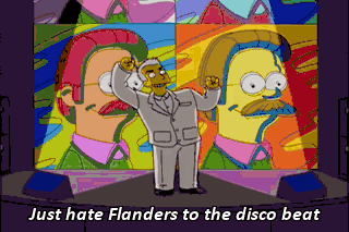If you despise polite left-handers Then I doubt you'll like Ned Flanders Or his creepy little offspring Rod and Todd - That's us.