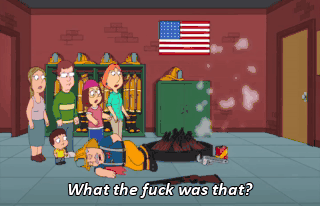 What the fuck was that? (IMITATING ENGINE NOISES) Come on, Stewie. We're going. Just a moment, Brian.