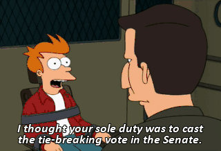I thought your sole duty was to cast the tie-breaking vote in the Senate. That, and protect the space-time continuum. Read the Constitution. Hmm, so I guess you'll want to see my Fry Hole.