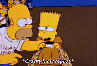 "Gravity is my copilot." Hey, boss. just in case you need it.