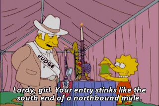Lordy, girl. Your entry stinks like the south end of a northbound mule.