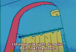 I think you're right, dumplin'. Bart ! Get the door ! Aye, aye, mambo man. Oof !