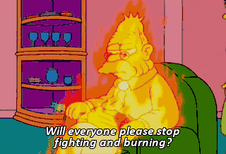 Will everyone please stop fighting and burning? Never! (SCREAMING)
