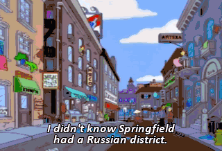 I didn't know Springfield had a Russian district. Excuse me. Can you tell me how to get to the museum? Hmm.
