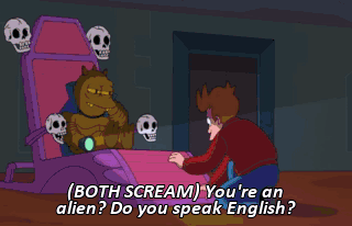 (BOTH SCREAM) You're an alien? Do you speak English?