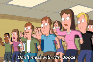 Don't mess with Mr. Booze That's what he said, now Don't mess with Mr. Booze Oh, Mr. Booze Don't mess with Mr. Booze Don't mess with Mister Oh, yeah, oh, yeah, oh, yeah