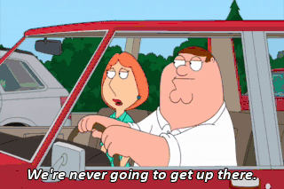 We're never going to get up there. I wonder what's causing all this traffic. Oh, boy. Yep, there's the problem. Not drawn yet. Come on, guys. Really? Let's go. What the hell's going on up there? (SNORING)