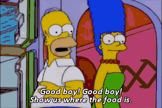 Good boy! Good boy! Show us where the food is. Where? Over there? Hey!