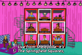 Live from Shelbyville, it's The Springfield Squares, featuring our new center square, Homer "Perfect Game" Simpson.