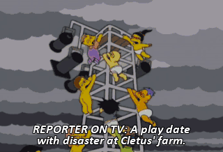 REPORTER ON TV: A play date with disaster at Cletus' farm.