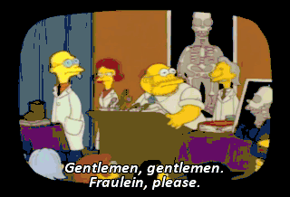 Gentlemen, gentlemen. Fraulein, please. This much I believe we can agree upon: this specimen is either a below-average human being... or... a brilliant beast. Stupid egghead.
