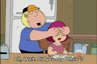 Oh, Wait. Did you say "Chris"? Stewie, time for breakfast! Did you wash your tentacles, my big handsome boy? What the devil are you talking about? Handsome? I'm repugnant! I'm a radio-bloody- active freak!