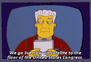 We go live now via satellite to the floor of the United States Congress. Then it is unanimous. We are going to approve the bill to evacuate the town of Springfield... - in the great state of-- - Wait a second.