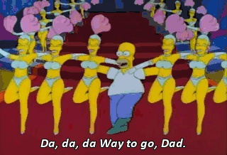 Da, da, da Way to go, Dad. Uh-oh. Wait a minute. Wait a minute. Stop the music.