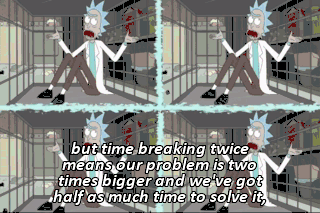but time breaking twice means our problem is two times bigger and we've got half as much time to solve it,