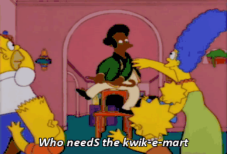 Who needS the kwik-e-mart not me forget the kwik-e-mart good-bye to kwik-e-mart who needs the kwik-e-mart