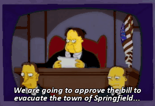 We are going to approve the bill to evacuate the town of Springfield... - in the great state of-- - Wait a second. I want to tack on a rider to that bill.