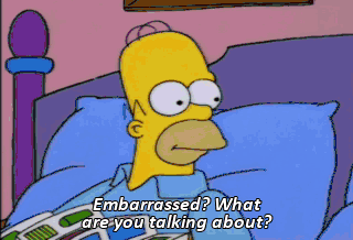 Embarrassed? What are you talking about? Well, there was our trip to the Amish country. Oh, yes. Hey, look, Marge. They're still not fighting back. Hee-hee! I can be a jerk and no one can stop me.