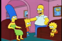 I made the snowball from the frost in our freezer. Nice p.j.'s, Simpson. Did your mommy buy 'em for ya? Of course she did. Who else would have? All right, Simpson. You win this round.