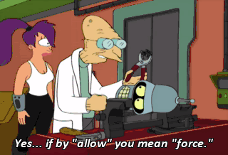 Yes... if by "allow" you mean "force." Ow... ooh... son of a... Oh, dear! Oh, my! Uh-oh! Once more. Steady now! There we go. Now, I'll simply tune it to Leela's emotional frequency.