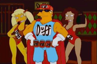Duffman can never die, only the actors who play him. Oh, yeah! Ah, you must be here for the, uh, Duff Trivia Challenge. That's right, local distributor. One of you could win a lifetime supply of Duff.
