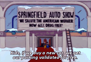 Kids, if we buy a new car, we get our parking validated for free.