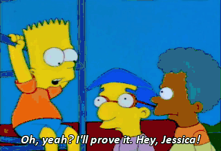 Oh, yeah? I'll prove it. Hey, Jessica! Yes? Am I supposed to know you? Jessica, we just-- Ooh! That's for besmirching an innocent girl's name! Why? I'm sorry, Bart.