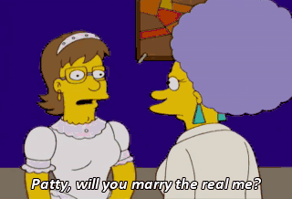 Patty, will you marry the real me? (GROANS) Hell, no, I like girls! (GASPS) (ALL APPLAUDING) Marge, thank you for accepting me for who I am.